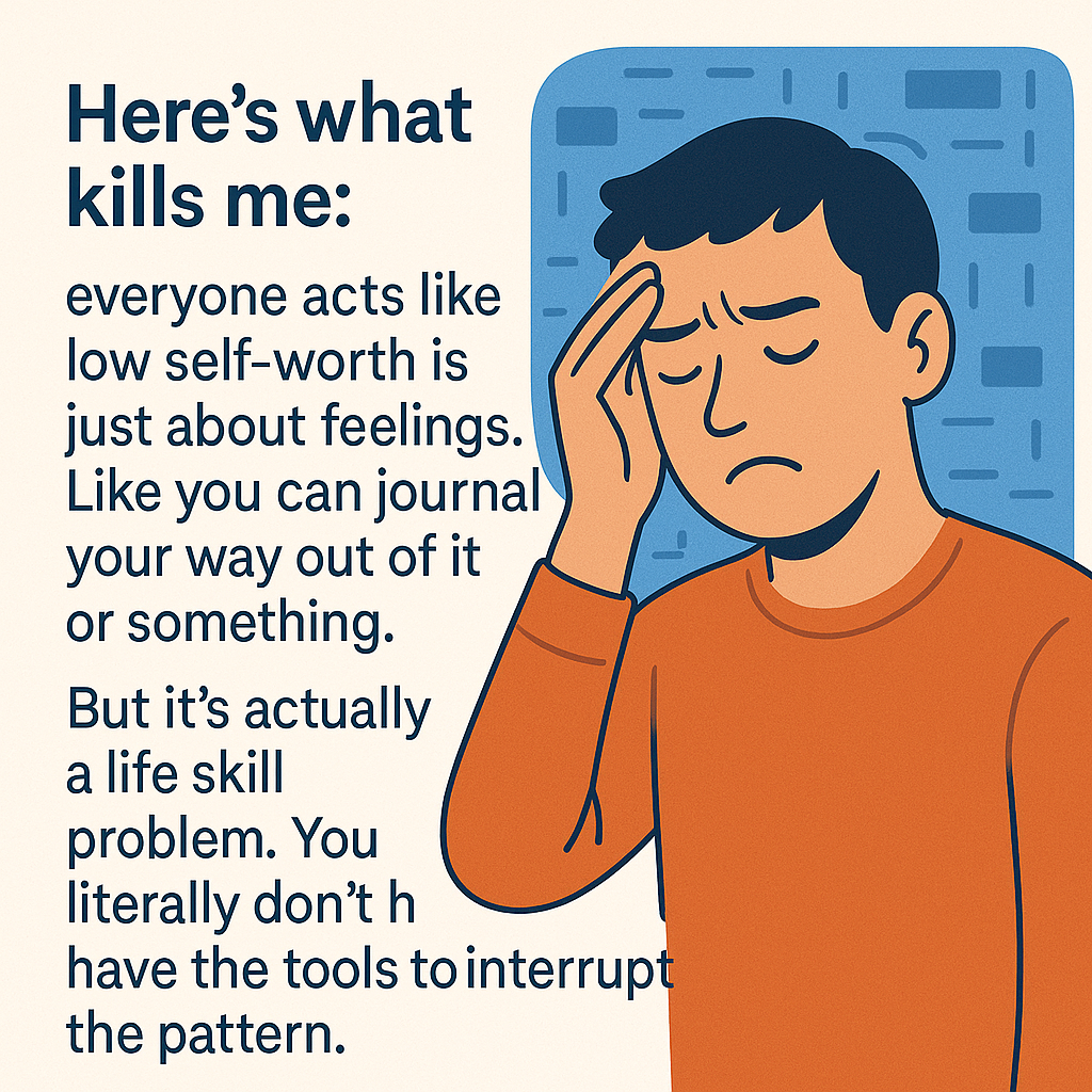 Low self-worth isn't a personality flaw. It's not about feelings. It's about not having the life skills to interrupt patterns that keep you small.