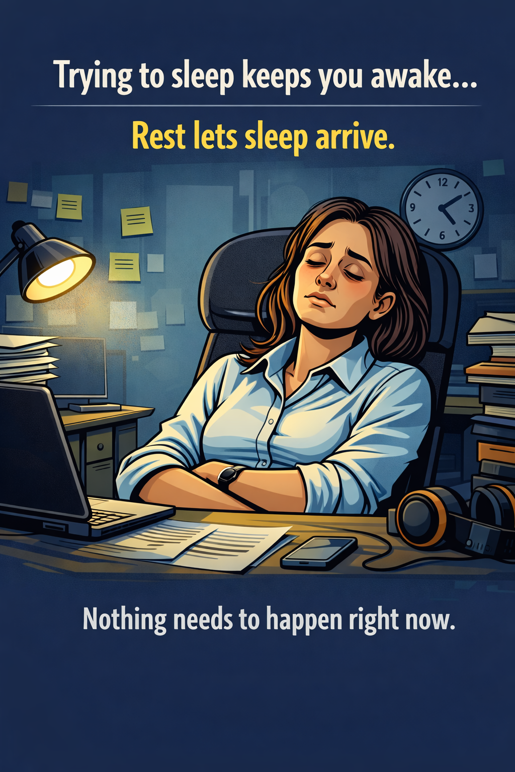 Tonight, when you can't sleep: Instead of fighting it, notice it. Instead of escalating, allow. Instead of adding another technique, remove the pressure.