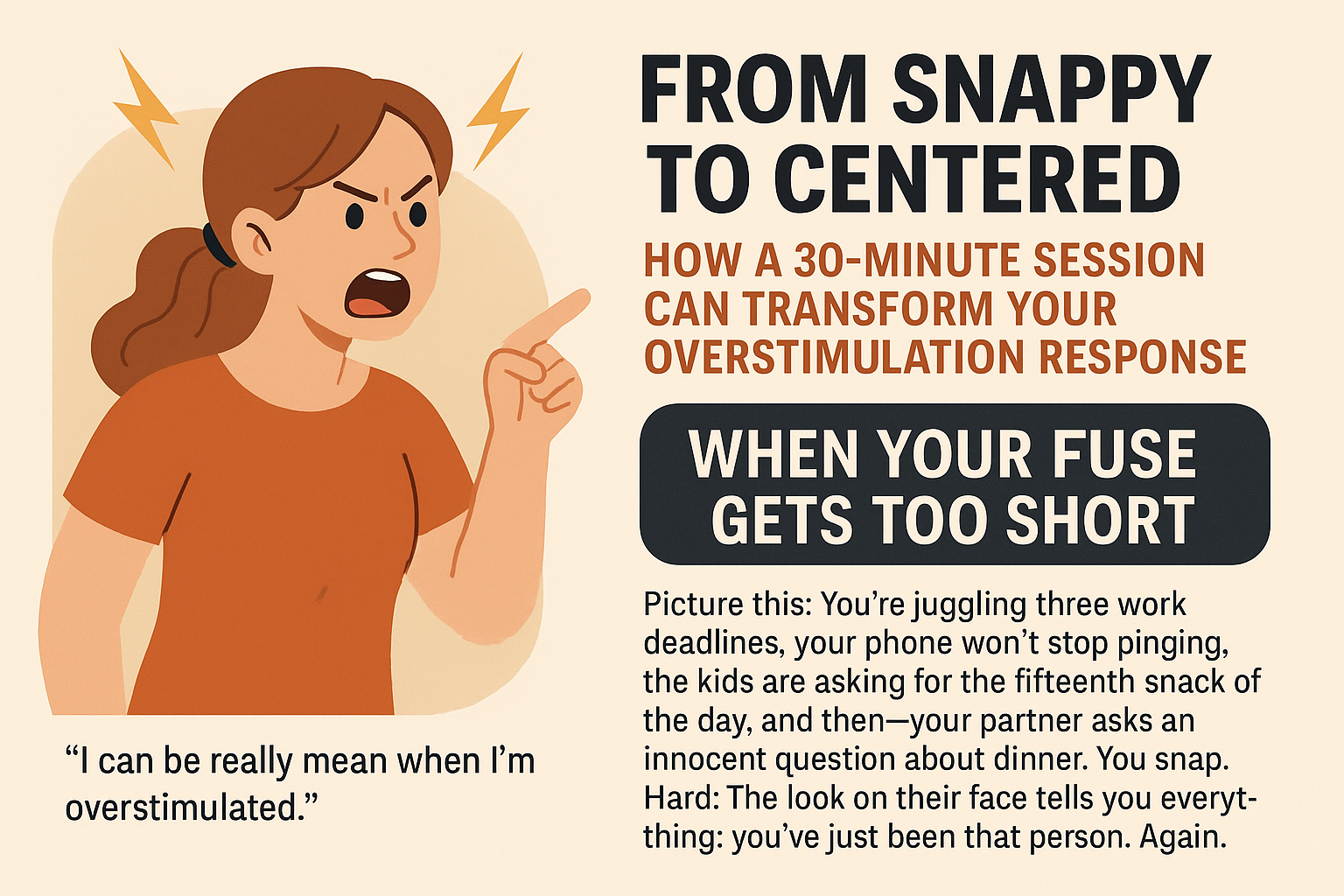 But then I learned about something called the Center-Breath + Label technique. One focused session to rewire how your nervous system handles overload. Not months of therapy. Not daily journaling. One session.